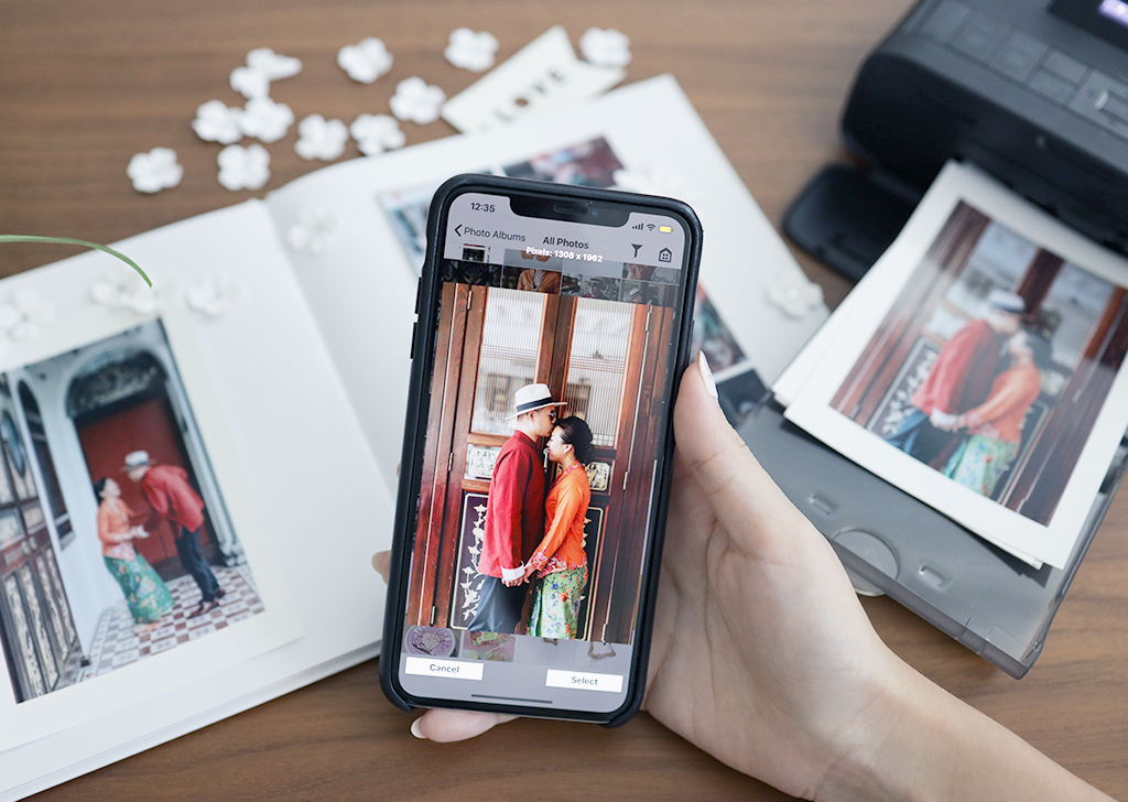 You organise a pre-wedding shoot and a wedding-day shoot, and some time later you receive the digital and selected physical copy of the photos… and then what? Some may choose to print and frame one or two photos, but most people simply put them aside until it is time to reminisce about the good old times. Why not make use of a SELPHY printer to create materials that you can keep close to your side in your everyday life? Here is how: