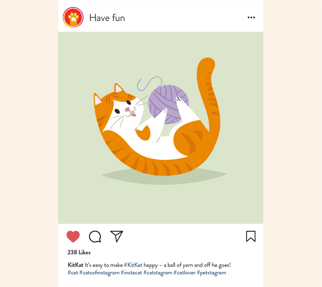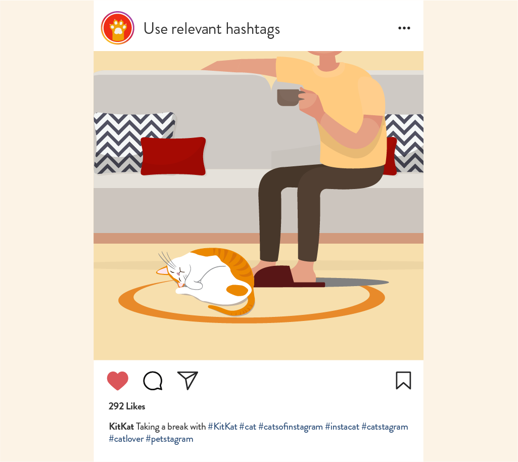 The right hashtags help your posts get seen by more followers, especially if your pet’s account is new and has a small following. Research on hashtags relevant to your pet to help you reach out to new audiences or communities beyond your followers. Popular hashtags include #petstagram and your pet’s related hashtags such as #catsofinstagram and #instacat. It’s also a good idea to create your own hashtag on Instagram, like #KitKat or #HamishtheHamster