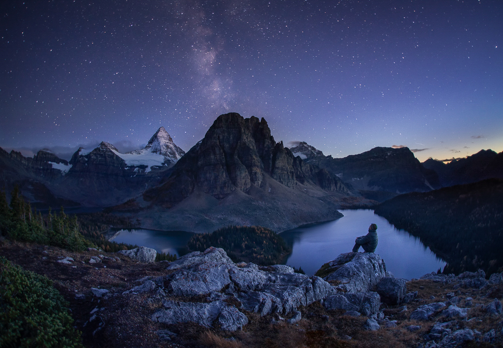 One of my most memorable nights in the backcountry: self-portrait watching the Milky Way dance above Mount Assiniboine.
