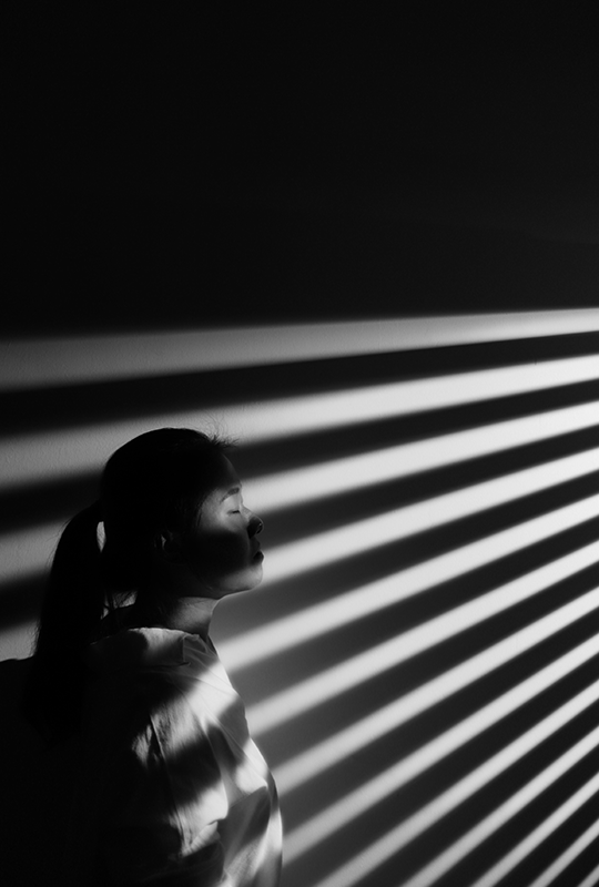 2. Use a human subject and allow the shadow to refract on the organic contours of the facial features. You can also move them around to conceal, reveal and frame parts of the face.