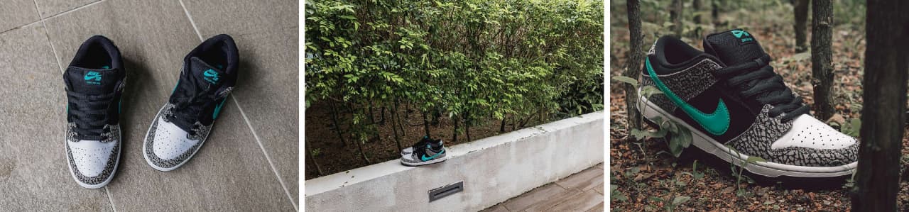 For the example above, I was inspired by the official name of the sneakers ‘Dunk Low 'atmos Elephant’. I wanted to showcase the sneaker as an elephant found in the forest. Therefore, I searched for a suitable location that gave the effect of trees, leaves and dirt.