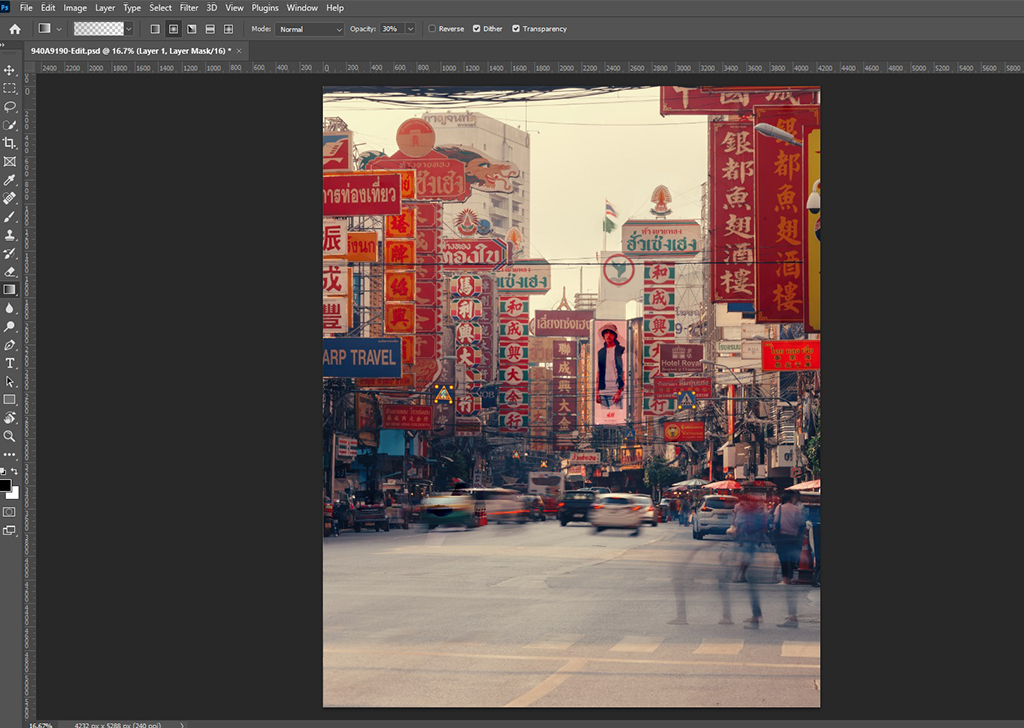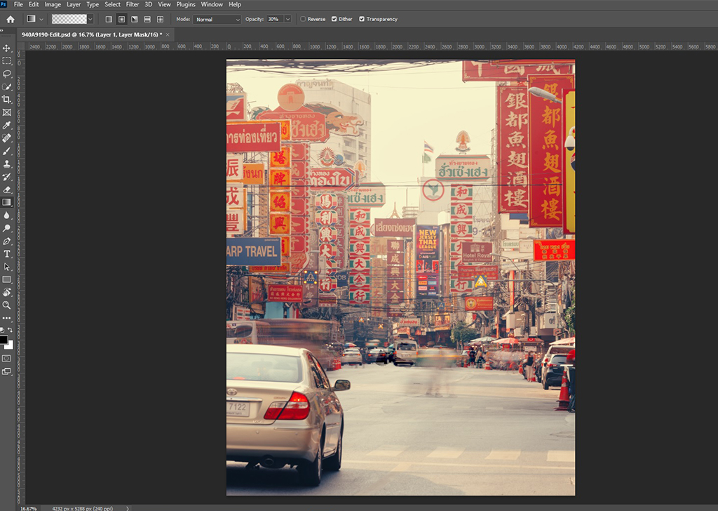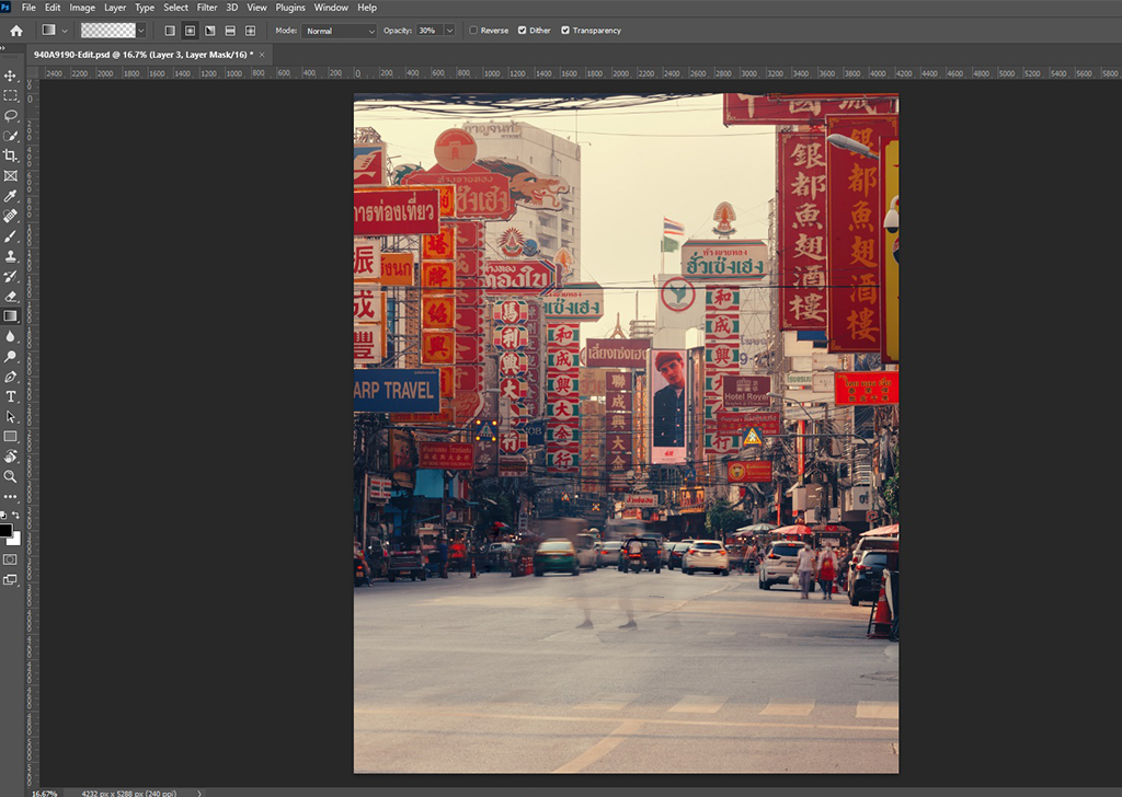Picking your scene isn’t as essential if you’re utilising the image stacking method, as it can be rather forgiving. Here we have an example shot of Chinatown in Bangkok, Thailand, where cars and pedestrians are in the shot: