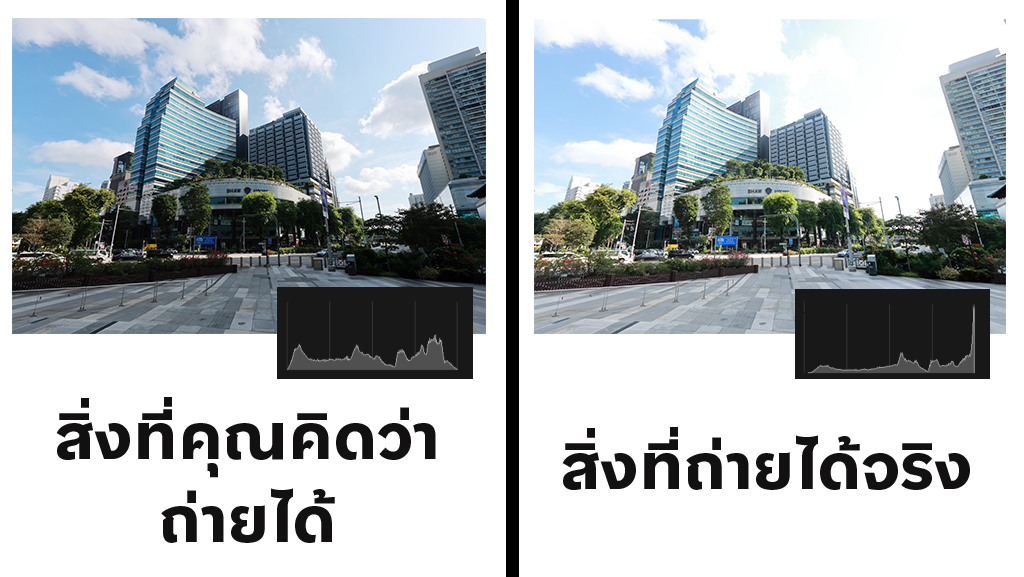 ใช้เพื่อ: คงรายละเอียดของส่วนไฮไลต์ในฉากที่มีความเปรียบต่างสูงหรือสว่างมาก