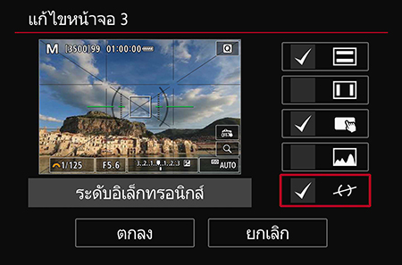แตะหรือกดปุ่ม “SET” เพื่อเลือกช่องที่อยู่ข้างไอคอนฮิสโตแกรม