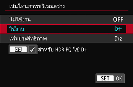 จะเปิดใช้งาน “เน้นโทนภาพบริเวณสว่าง” ได้อย่างไร