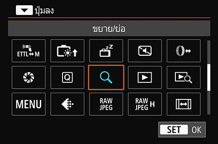 มองหาและเลือกไอคอนแว่นขยาย กดปุ่ม SET