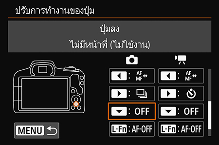 สำหรับบทความนี้ เราเลือกปุ่มเลื่อนลงซึ่งไม่มีฟังก์ชั่นใดๆ ในการถ่ายแบบ Live View ด้วยกล้อง EOS R50