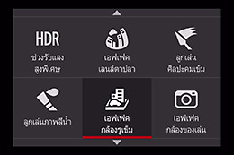 จอเลือกโหมดการถ่ายภาพ คุณจะพบรายการโหมดต่างๆ รวมทั้งโหมดการถ่ายพื้นฐาน เอฟเฟ็กต์ฟิลเตอร์สร้างสรรค์ และโหมดการถ่ายภาพที่หน้าจอนี้ ซึ่งช่วยให้การเลือกโหมดง่ายขึ้นเทียบกับระบบที่จัดกลุ่มโหมดแบบแยกย่อย