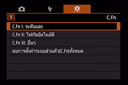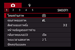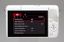 หน้าจอเมนูมีการออกแบบและเลย์เอาต์แทบจะเหมือนกับกล้อง EOS ซีรีส์อื่นๆ ผู้ใช้ EOS อยู่แล้วก็จะค่อนข้างคุ้นเคย รายการเมนูจากบนสุดคือเมนูการถ่ายภาพ เมนูการตั้งค่าฟังก์ชั่น และเมนูฟังก์ชั่นแบบกำหนดเอง