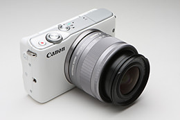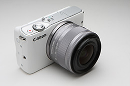 แฟลชป๊อบอัพในตัวกล้องมีหมายเลขไกด์อยู่ที่ประมาณ 5 เมตร (ISO100) เลนส์ซูมมาตรฐานใหม่ EF-M15-45mm ครอบคลุมมุมกว้างเทียบเท่า 24 มม. สำหรับฟอร์แมตฟิล์ม 35 มม.