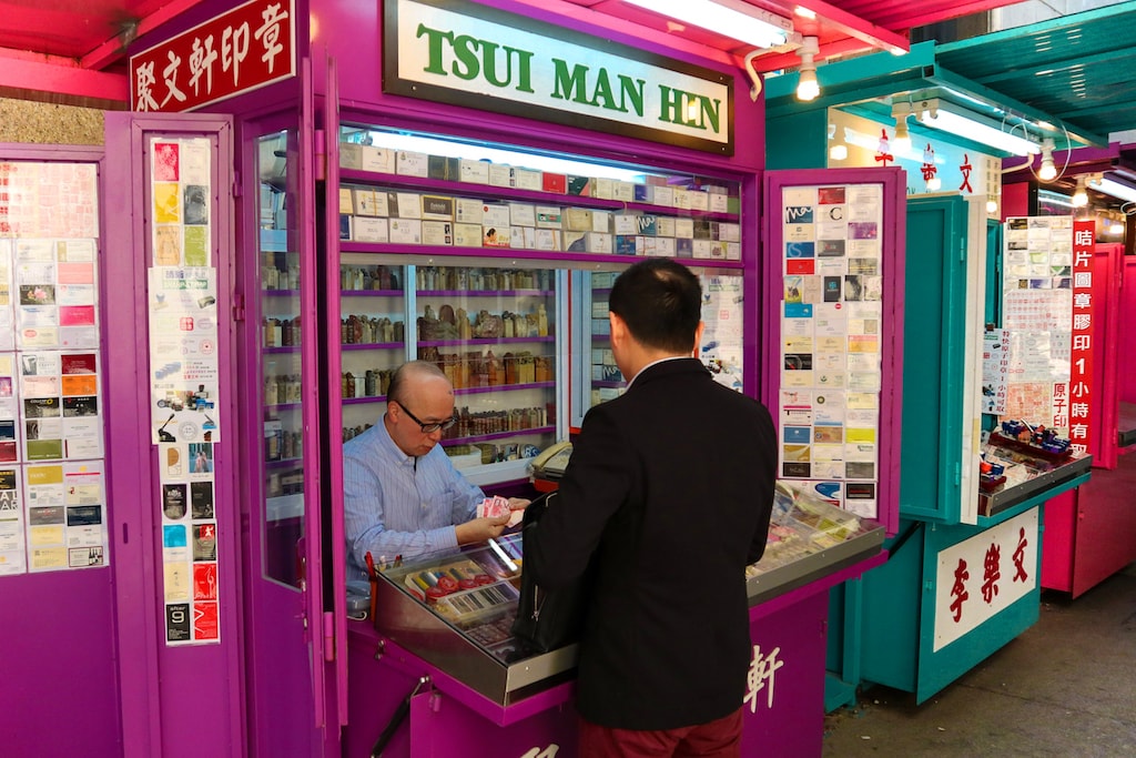 Man Wa Lane ซึ่งเป็นที่รู้จักกันว่า Chop Alley คือถนนในย่านเชิงวาน ทอดยาวจากถนนบอนสแตนด์ไปจนถึงถนนคอนนอจเซ็นทรัล ถนนสายนี้ลือชื่อด้านร้านผลิตตราประทับ นับจากตราจีนโบราณ ไปจนถึงตรายางสมัยใหม่ นอกจากนี้ มีร้านค้าบางแห่งให้บริการพิมพ์นามบัตรสมัยใหม่หลากชนิด