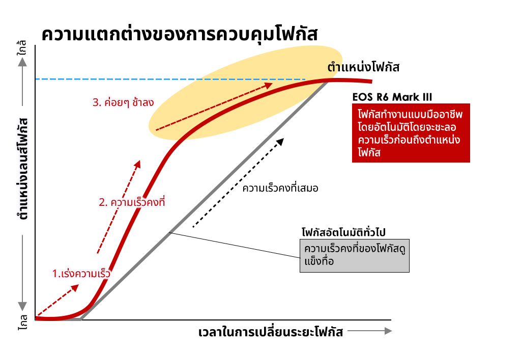 EOS R6 Mark III ใช้อัลกอริธึมเร่ง/ชะลอโฟกัสแบบเดียวกับที่ใช้ในกล้อง Cinema EOS C400/C50 จึงสามารถเปลี่ยนจุดโฟกัสได้อย่างลื่นไหลเหมือนมืออาชีพที่จะยกระดับภาพยนตร์ท่องเที่ยวของคุณ อีกทั้งยังตรวจเช็คโฟกัสได้ง่ายขณะบันทึกภาพ เพียงแค่ขยายภาพบนหน้าจอ!
