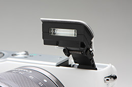 內置彈出式閃光燈的閃光指數約為5(ISO 100,單位為米)。新的標準變焦鏡頭EF-M15-45mm,其拍攝角度廣闊,相當於35mm格式的24mm。