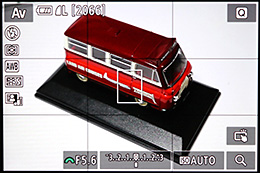 取景屏幕的介面跟EOS M3幾乎相同。影像上亦顯示了網格。