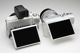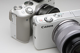EOS M10與EOS M3並排比較。除了握柄外,兩部相機的外觀幾乎完全相同。