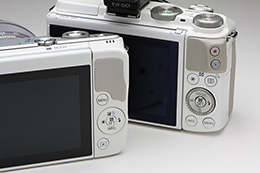 在控制介面方便,兩部相機的差異挺大。EOS M3的十字按鈕外圍有控制轉盤,EOS M10並沒有此轉盤。