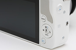 相機背面的控制介面。十字控制鍵在頂部及底部分別設有按鈕,營造簡潔的外觀,跟相機頂一樣。