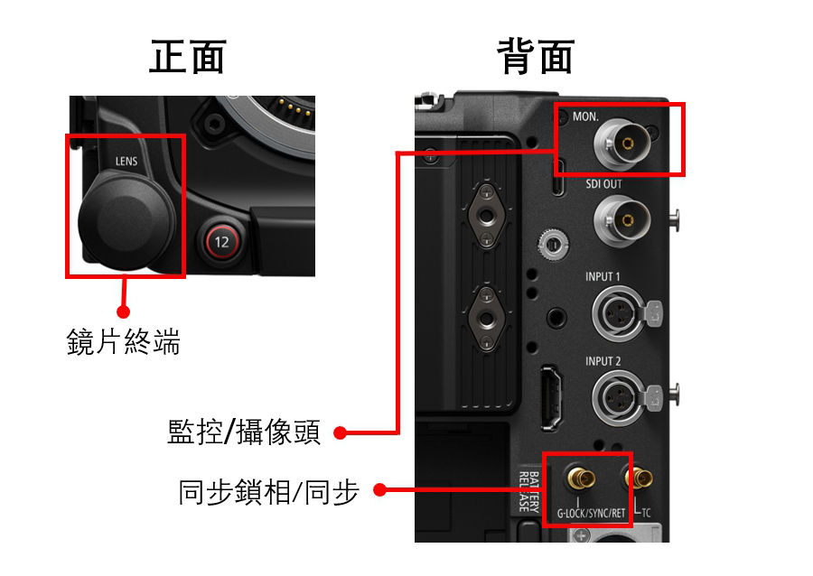 - 12 針 LENS 終端(可用於電源電影伺服器/廣播鏡頭)