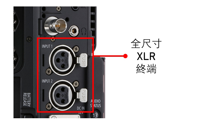 全尺寸 XLR 終端可提供更堅固耐用的連接。如果您現有的支援/音訊設備使用標準 XLR 連接器,您就不需要轉接器。