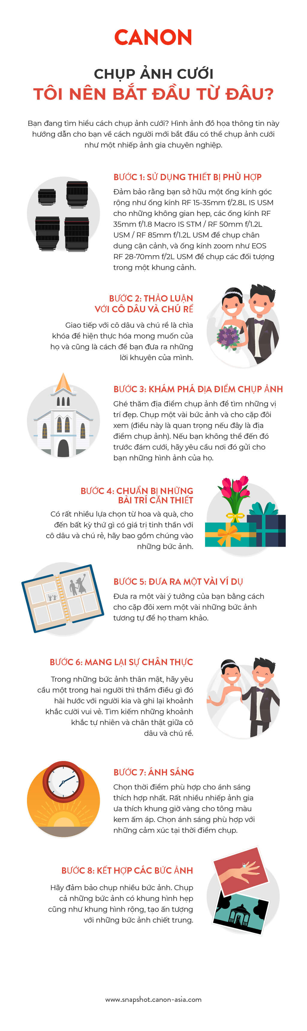 Bạn đang tìm hiểu cách chụp ảnh cưới? Hình ảnh đồ họa thông tin này hướng dẫn cho bạn về cách người mới bắt đầu có thể chụp ảnh cưới như một nhiếp ảnh gia chuyên nghiệp.