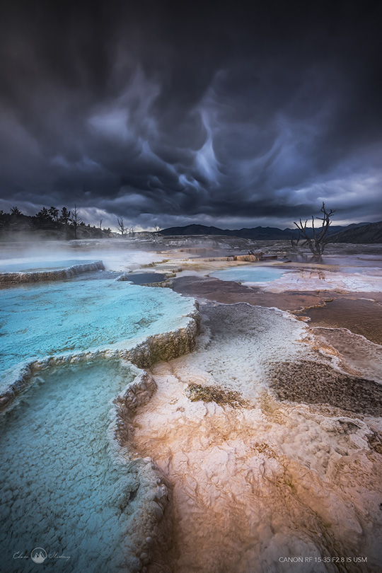 The most memorable moments of my travels were photographing in extreme and unpredictable weather, just like at the Yellowstone National park, where I photographed the forming of mammatus clouds – it was fleeting and I had to react and compose quickly the shot for that moment. Having the RF 15-35mm f/2.8L IS USM lens with 5 stops Image Stabilization, I was able to photograph without a tripod – just a handheld Canon EOS R shooting these surreal photos at low shutter speeds while managing to keep the shots sharp.