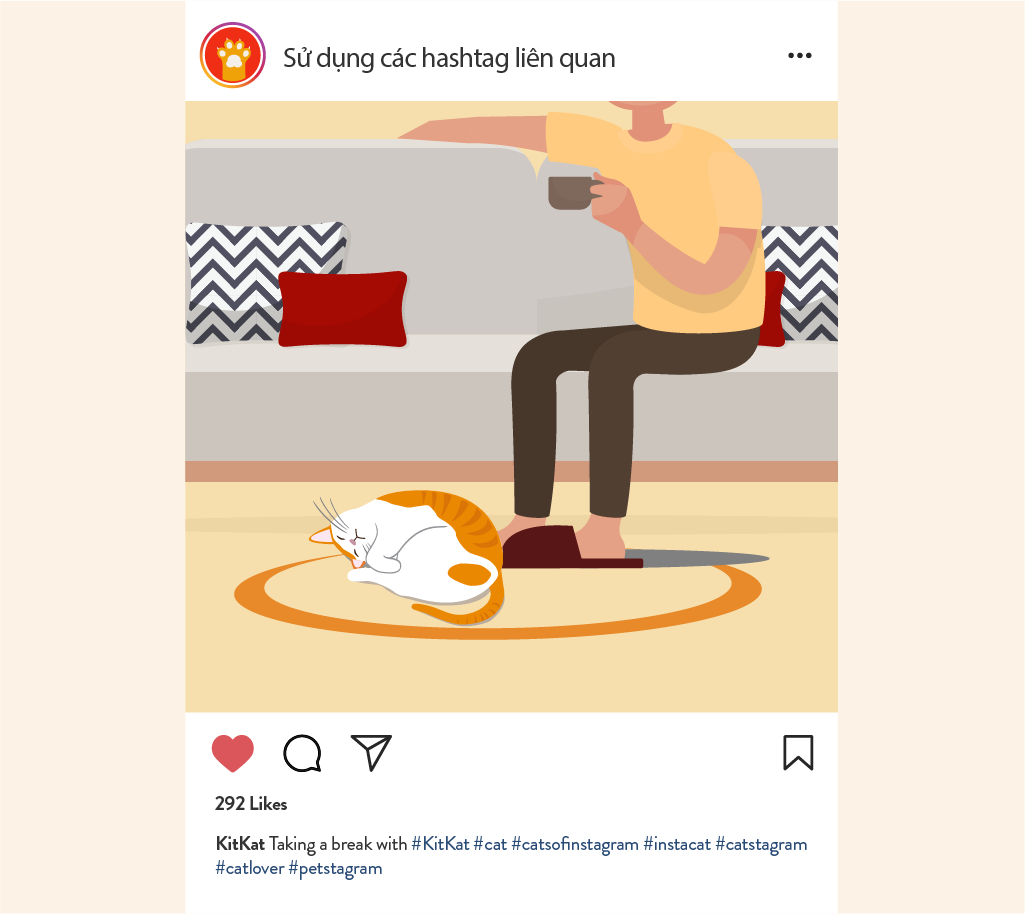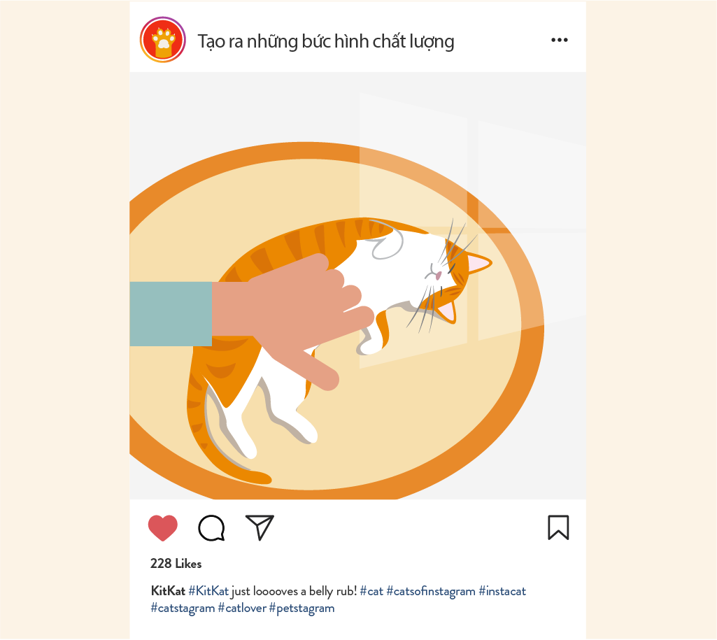 Hashtag phù hợp giúp bài đăng của bạn được nhiều người theo dõi nhìn thấy hơn, đặc biệt là khi tài khoản thú cưng của bạn mới được lập và có ít người theo dõi. Hãy nghiên cứu về những hashtag liên quan tới thú cưng của bạn để giúp bạn tiếp cận thêm nhiều khán giả hoặc những cộng đồng mới bên cạnh những người theo dõi của bạn. Các hashtag phổ biến bao gồm #petstagram và các hashtag liên quan đến chú thú cưng của bạn chẳng hạn như #catsofinstagram và #instacat. Một ý tưởng tuyệt vời nữa là hãy tự tạo hashtag trên Instagram của riêng bạn, chẳng hạn như #KitKat hoặc #HamishtheHamster