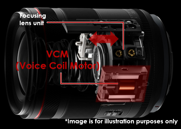 VCM chứa các nam châm dẫn động tạo ra một từ trường vĩnh cửu, và một cuộn dây cũng tạo ra một từ trường khi có dòng điện chạy qua. Sự tương tác giữa các từ trường tạo ra một lực đủ mạnh để điều khiển cụm thấu kính chỉnh tiêu lớn, nhưng vẫn có thể được kiểm soát chính xác.