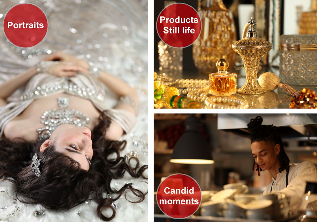 Những ưu điểm giúp cho các ống kính 85mm trở nên rất phù hợp khi chụp ảnh người cũng có lợi cho các đối tượng khác. Tận dụng khả năng tái tạo hình dạng trung thực của ống kính RF85mm f/1.4L VCM để giới thiệu sản phẩm và chụp ảnh chi tiết; tận dụng phạm vi tiếp cận và hiệu ứng bokeh của nó để trình bày những khoảnh khắc tự nhiên từ góc nhìn của người quan sát vô hình, theo phong cách điện ảnh cổ điển.