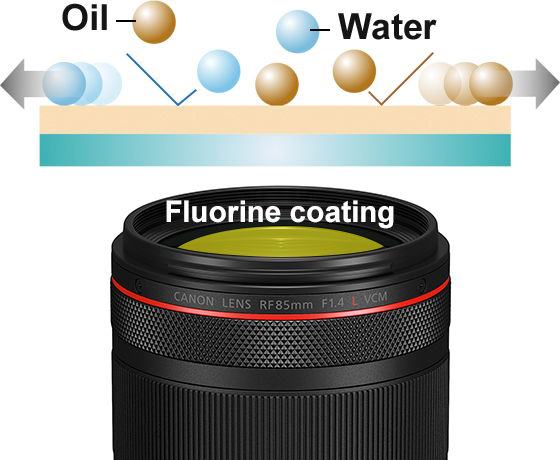 Lớp phủ fluorine chống ố trên thấu kính ngoài cùng phía trước giúp ngăn bụi bẩn bám vào ống kính, và cho phép dễ dàng lau bằng một tấm vải sạch.